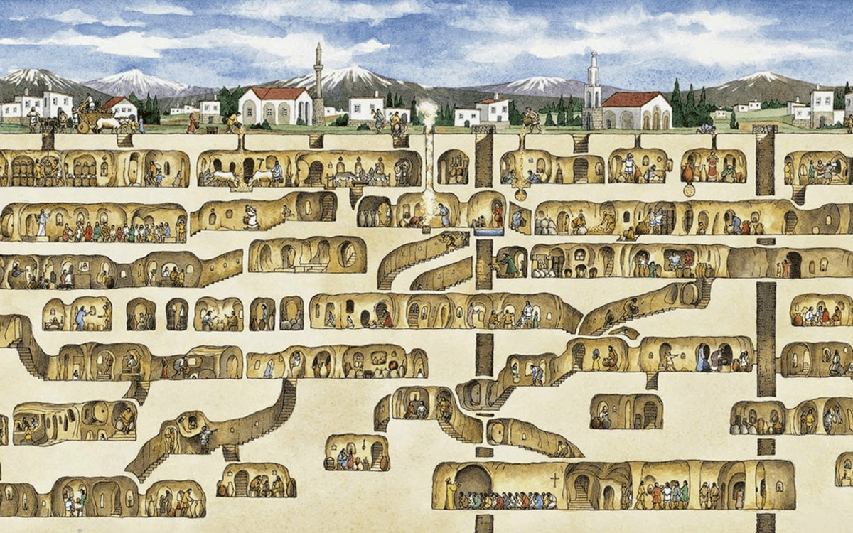 Архитектура же Деренкую лишена этой человеческой логики. Ее часто описывают как «лабиринтообразную» и «напоминающую муравейник или термитник». Здесь нет центральных улиц, главных площадей или ясной иерархии пространств. Это хаотичное, на первый взгляд, нагромождение тоннелей, ответвлений и крохотных комнат, где легко заблудиться. Подобная планировка эффективна для защиты, но крайне неэффективна для социальной жизни крупной человеческой общины. Она идеально подходит для существ, чье восприятие пространства, социальная структура и способы коммуникации радикально отличаются от наших.