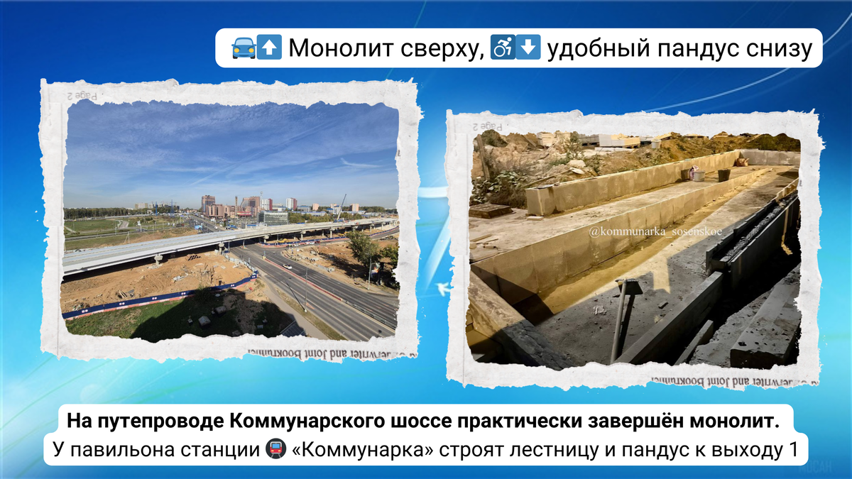 Две стройки Коммунарки: 🚘✅ шоссе в монолите, 🚇♿️ вход метро с пандусом