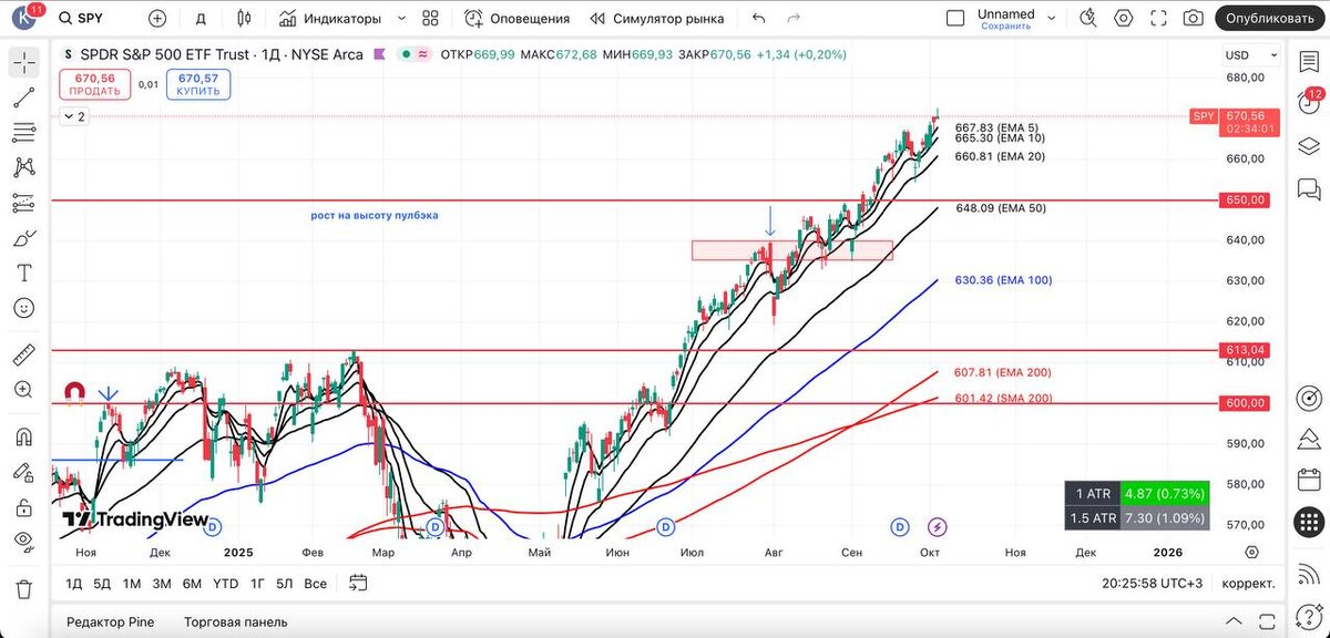 Что мы видим? То, что говорил ранее. Видим слабость техов и силу ротационной отрасли — $DIA, $RSP, $RUT — чем, конечно, мы воспользовались. В данный момент $SPY рисует «падающую звезду» — чему мы тоже не удивлены, учитывая отдаленность от скользящих. Крипта также на этой неделе показала силу. Позитив на фондовом рынке — позитив на всех рынках. Наблюдаем за $BTC, который подходит к историческому максимуму, поэтому не удивимся, если он также возьмет небольшую паузу перед пробитием. Отлично читаем рынок, проделываем просто фантастическую работу! Всем отличных выходных! 😎 #spy #технический_анализ #америка #трейдинг_сша #фондовый_рынок #обзор #вывод #qqq #vix #smh #dia #rsp #rut #крипта #btc #eth