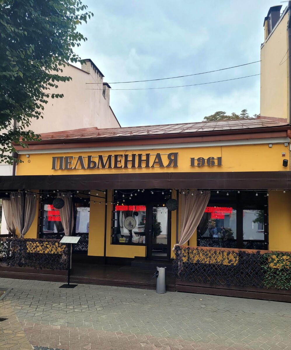 Это место для ужина я выбрала совершенно спонтанно. Популярный ресторан Бреста, в который я собиралась, оказался закрыт на спецобслуживание. Идя по брестскому Арбату - пешеходной улице Советской - мой выбор пал на "Пельменную 1961". Решив, что раз заведение работает свыше полувека, пельмени здесь готовить явно умеют, я отправилась на трапезу. Драники к тому времени уже надоели:)