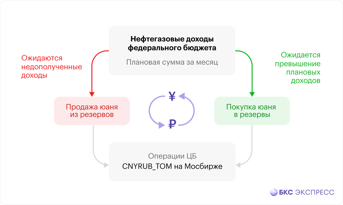 Целевой объем покупок или продаж валюты определяется ежемесячно. Это позволяет производить операции с валютой небольшими частями в течение года, чтобы сглаживать эффект и в моменте не оказывать сильного влияния на рынок.