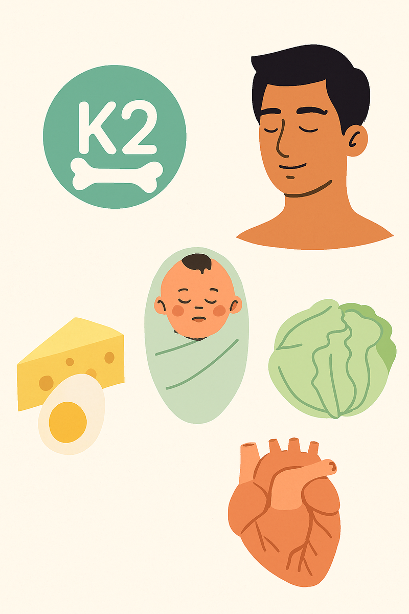 ΠΈΠ½ΠΎΠ½) ΠΈΠ³ΡΠ°Π΅Ρ ΠΎΡΠΎΠ±ΡΡ ΡΠΎΠ»Ρ Π² ΠΌΠ΅ΡΠ°Π±ΠΎΠ»ΠΈΠ·ΠΌΠ΅ ΠΊΠ°Π»ΡΡΠΈΡ ΠΈ Π·Π΄ΠΎΡΠΎΠ²ΡΠ΅ ΡΠΎΡΡΠ΄ΠΎΠ². Π£ ΠΌΠ»Π°Π΄Π΅Π½ΡΠ΅Π² ΡΡΠΎΠ²Π΅Π½Ρ K2 ΠΊΡΠ°ΠΉΠ½Π΅ Π½ΠΈΠ·ΠΊΠΈΠΉ, Π° ΠΊΠΈΡΠ΅ΡΠ½Π°Ρ ΠΌΠΈΠΊΡΠΎΡΠ»ΠΎΡΠ° Π΅ΡΡ Π½Π΅ ΡΠΏΠΎΡΠΎΠ±Π½Π° Π΅Π³ΠΎ ΡΠΈΠ½ΡΠ΅Π·ΠΈΡΠΎΠ²Π°ΡΡ. ΠΠΎΡΡΠΎΠΌΡ: β
