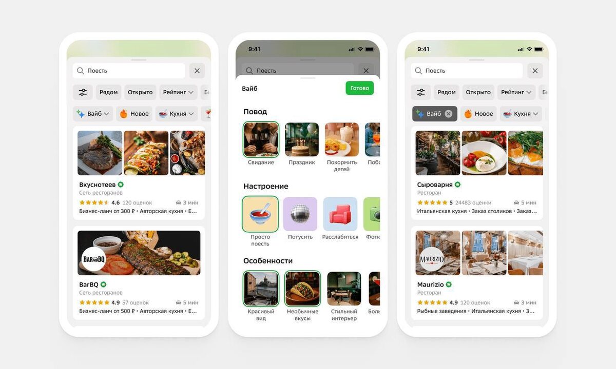 2ГИС теперь ищет по вайбу. 🍴 В «2ГИС» появился ИИ-поиск, который помогает выбирать кафе и рестораны не по кухне и звёздочкам, а по настроению и атмосфере. Новый фильтр «Вайб» подскажет, куда пойти на свидание, поесть ПП или полюбоваться закатом. 🍨 Теперь можно искать и конкретные блюда — например, «паста с лисичками» или «штрудель с мороженым». Приложение также покажет заведения с похожими интерьерами или подачей, а ещё добавили фильтр «Новое» для тех, кто любит открывать свежие места.