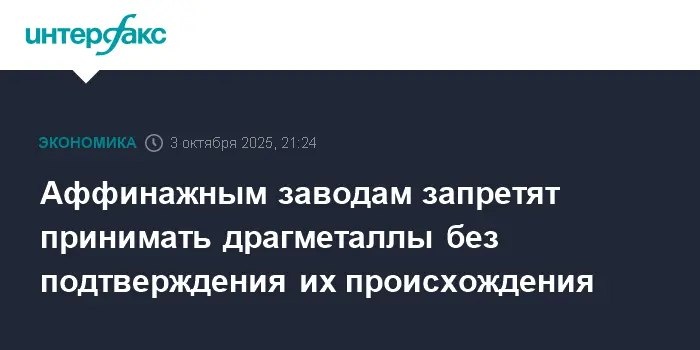 Правительство и Госдума усиливают правила ГИИС ДМДК для рынков драгметаллов С 1 сентября 2026 года аффинажные заводы начнут принимать драгметаллы только по новым правилам. Теперь происхождение золота и других ценностей надо будет подтверждать через гос. систему ГИИС ДМДК. Это как модный QR-код для золота, чтоб все чисто и прозрачно было. За нарушение — штраф, но зато рынок станет честнее и безопаснее. Минфин за всем следит, так что готовьтесь к цифровой эре в мире драгоценностей! 🗞 Подробнее: fabrec.ru 🏞 Фото от: www.interfax.ru 🔔 Подписывайтесь на нас: fabrec_press