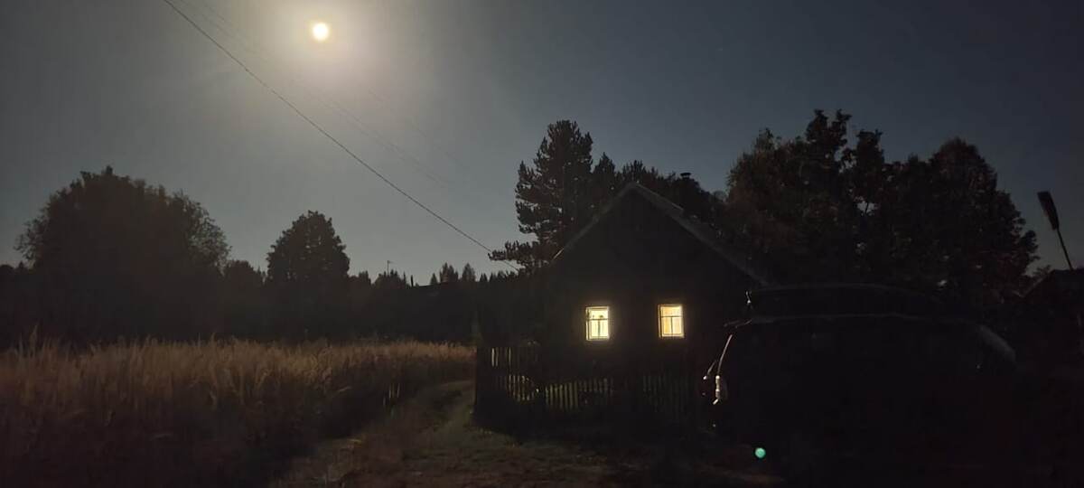 Из ночных развлечений в деревне только звёздное небо да полная луна. Полнолуние - удивительное зрелище. Сразу вспоминается строчка из старой любимой песни - "...и такой на небе месяц, хоть иголки собирай". А у нас целая луна. Лунища! Светлоликая, круглолицая, прекрасная, ясная. Освещения в нашей глухомани нет. Если нет луны, то темнота непроглядная, нужно какое-то время, чтобы привыкнуть к темноте. Мы знаем всю местность практически наощупь, поэтому быстро адаптируемся, но всё-таки время от времени натыкаемся на что-нибудь. Но когда светит луна, это событие мирового масштаба, а мир, это наша деревня, где кроме нас никого нет. Только мы и луна. Светит она так ярко, что действительно, можно собирать иголки. Видно всё - каждую травинку, каждый листочек, мох на камне и даже шиповник на пышном кусте. Налюбовавшись накануне полной луной, мы пошли перед сном посмотреть на ночную красавицу и на следующую ночь. И каково же было наше изумление, когда на небе вместо луны нас ждал тонкий месяц. Ч