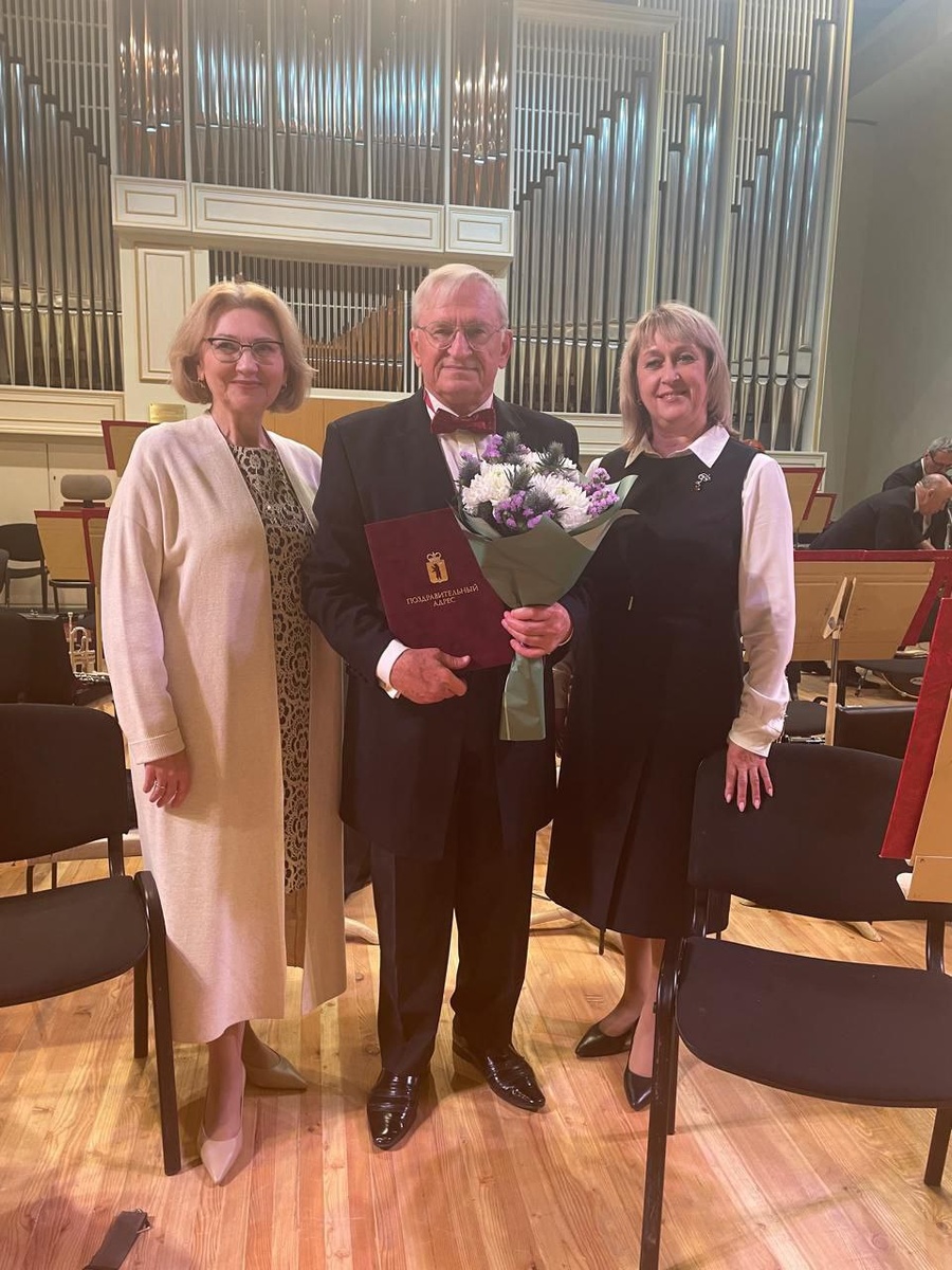В замечательный юбилей маэстро Анатолия Оселкова 2 октября на сцене Ярославской государственной филармонии советник губернатора по вопросам культуры 💁♀️Марина Владимировна Васильева вручила Поздравительный адрес от Правительства Ярославской области для заслуженного артиста России 🙋♂️Анатолия Оселкова . Со словами благодарности, искреннего служения музыке и на благо Земли Ярославской. С приветственным словом на сцену вышла начальник управления культуры мэрии города Ярославля 💁♀️ Ольга Владимировна Каюрова и вручила памятный знак "За заслуги в развитии культуры города Ярославля". Мы поздравляем Анатолия Васильевича с этой замечательной наградой и желаем от души крепкого здоровья и гордимся нашим дорогим коллегой. #ЯАГСО