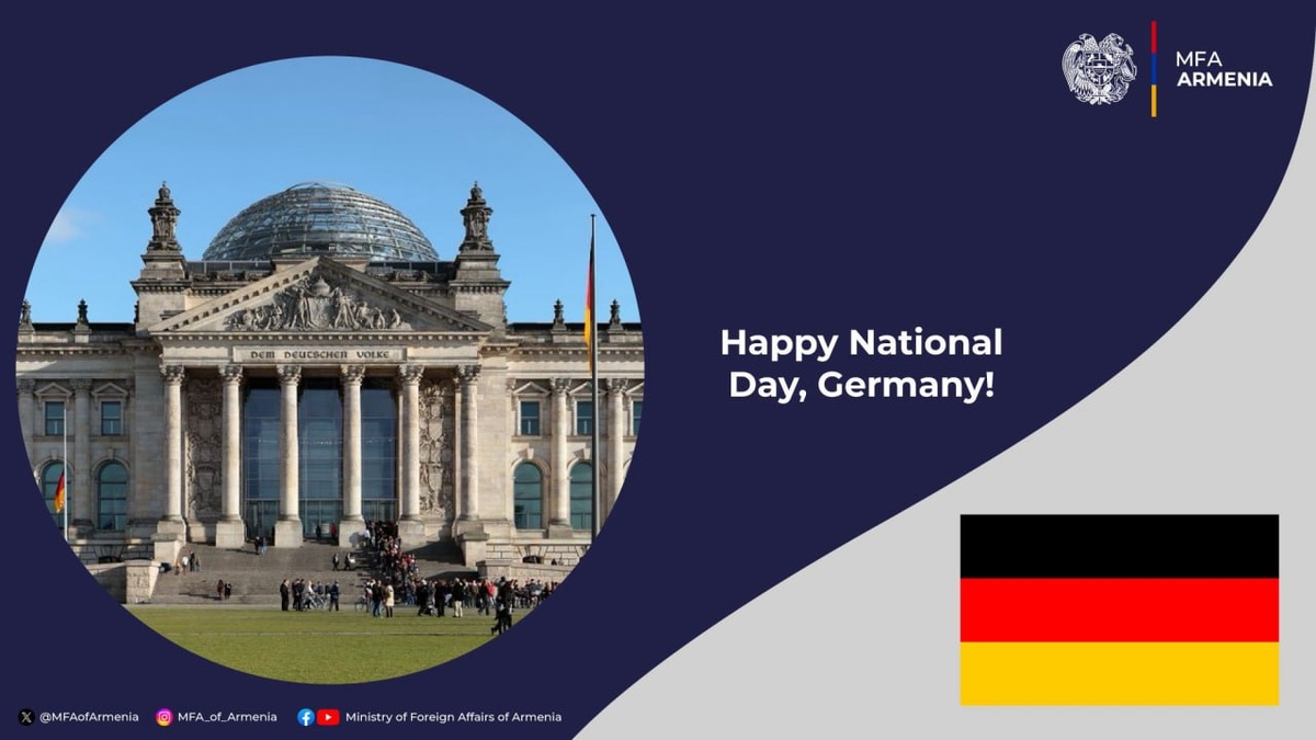 Министерство иностранных дел Республики Армения поздравило Германию с Днем немецкого единства, пожелав немецкому народу мира и процветания