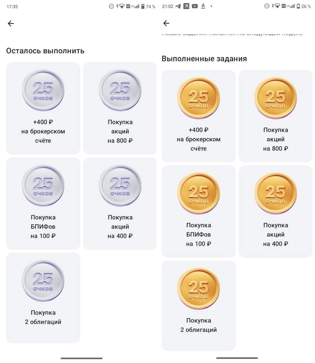 Также вы знаете, за выполнения заданий в этих челленджах выдают акции: