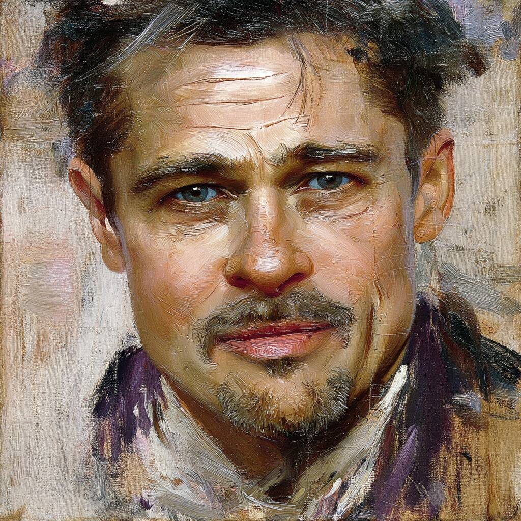 🎨 Обычно «Портретную историю» заказывают для детей или женщин. Им ближе тема искусства, и это всегда очень трогательно. Но однажды меня попросили сделать книгу для мужчины. Это был один из первых таких заказов, и я очень волновалась. Делала сама, даже ночью. И каково было моё удивление — формат в 14 стилях художников вызвал настоящий фурор. Столько благодарности и тёплых слов! Эта история навсегда останется у меня в сердце ❤️ 📖 Саму книгу я показать не могу (это личный заказ). Но прикладываю фото обычного экземпляра — и портрет Брэда Питта в стиле Николая Фешина, чтобы вы почувствовали атмосферу. Искусство работает с каждым. Независимо от возраста и пола. Главное — увидеть себя в нём ✨