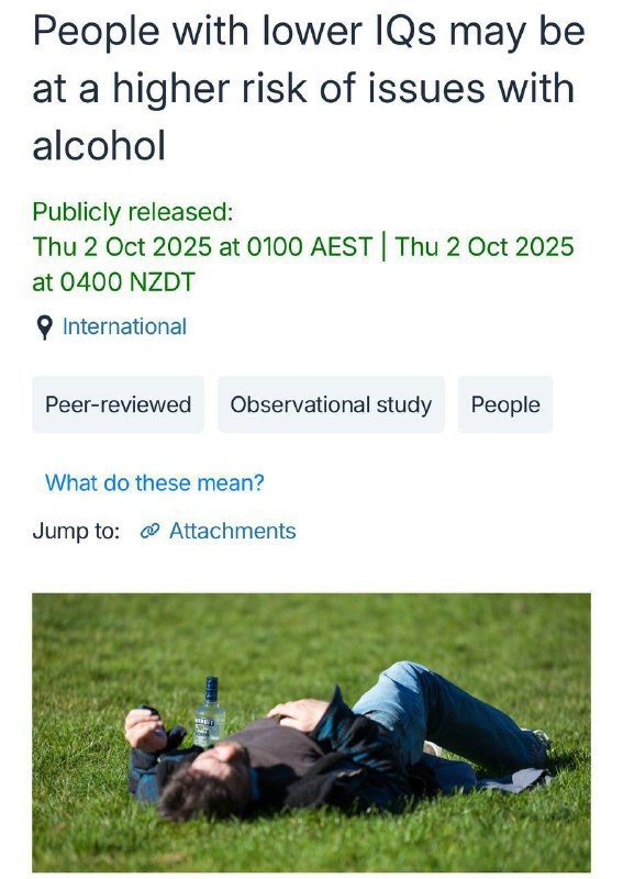 ⚡️Учёные доказали: низкий IQ напрямую связан с алкоголизмом. В исследовании прогнали данные 600 тысяч человек и сделали неожиданный вывод.