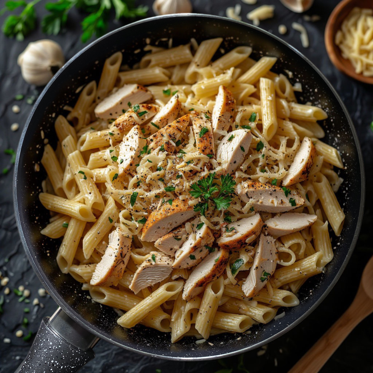 Кремовая, нежная и очень домашняя — эта паста с курицей и сливочным соусом Альфредо подарит вам настоящее чувство уюта. Перышки идеально удерживают соус, и каждый кусочек просто тает во рту! ✨ ✅ паста перышки — 300 г ✅ куриное филе — 400 г ✅ сливки 20–30% — 300 мл ✅ сливочное масло — 50 г ✅ сыр пармезан — 70 г ✅ чеснок — 2 зубчика ✅ оливковое масло — 1 ст. л. ✅ соль, перец — по вкусу ✅ петрушка — для подачи ▪️ Отвариваем пасту перышки до состояния al dente в подсоленной воде. ▪️ Пока варится паста, нарезаем куриное филе небольшими кусочками и обжариваем в сковороде DREAM STONE (на OZON: https://www.ozon.ru/product/skovoroda-antiprigarnaya-dream-stone-diametr-24-sm-1706261589/