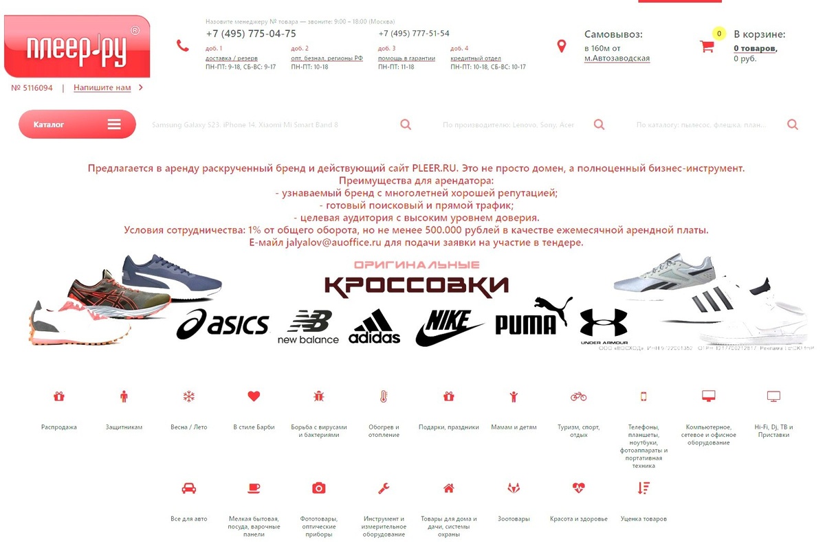 Сайт и бренд популярного магазина «Плеер.ру», который закрылся, будут сдаваться в аренду — стоимость аренды составит не менее 500 тысяч