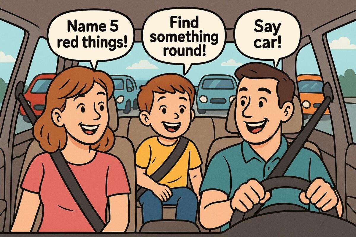 - I spy (ай спай) Я шпион: «I spy with my little eye… something red! (Ай спай май литл ай...самсин Ред!)» -"Я замечаю своим маленьким глазком... что-то красное" (машина, светофор).