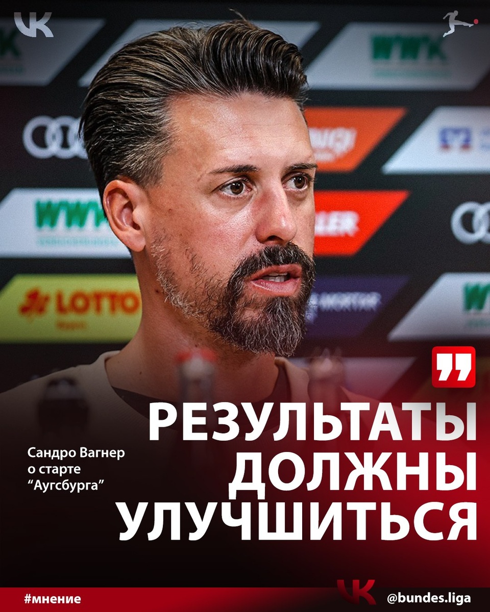 ⚡️ Тренер «Аугсбурга» Сандро Вагнер заявил, что «в составе точно будут изменения» после «интенсивной» тренировочной недели перед матчем с «Вольфсбургом» в эти выходные. 💬 «В последнее время мы дважды плохо сыграли, но в предыдущие недели дела шли лучше. Мы должны выкладываться на поле на 100% в каждом матче. Команда знает, что в субботу им предстоит сразиться с соперниками на глазах у своих болельщиков. Нам нужно улучшить результаты, и мы должны показать себя с другой стороны [в матче с «Вольфсбургом»]. 🏆 Это Бундеслига, брат! #Бундеслига