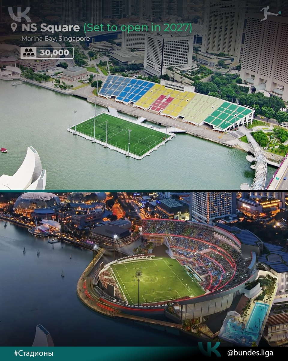 #Стадионы 🆕 В Сингапуре полным ходом идёт грандиозное строительство стадиона "NS Square", который будет вмещать 30 тыс. зрителей. Сейчас это плавучий стадион, а совсем скоро арена будет использоваться в качестве сцены, спортивного сооружения или арены для различных парадов, шоу, спорта и публичных мероприятий. Стоимость строительства оценивается в 509 млн долларов 💰