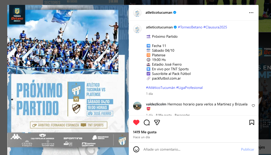 ESTE SABADO 4/10/2025 JUEGA EL DECANO ATL TUCUMAN VS PLATENSE A LAS 19:00