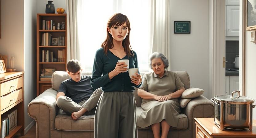 — А ты думаешь, я не устаю? — голос ее дрогнул. — Я тоже работаю, тоже считаю копейки. Но почему-то все претензии — ко мне.