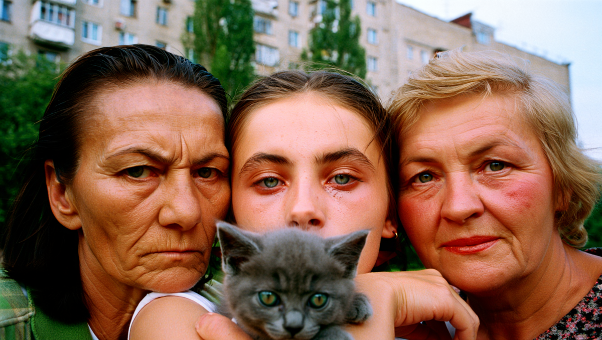 Серый котёнок появился у нашего подъезда в начале осени. Маленький, грязный, с огромными зелёными глазами. Сидел на ступеньках и жалобно мяукал. Я шла с работы усталая, хотела пройти мимо, но он посмотрел на меня так, что ноги сами остановились.