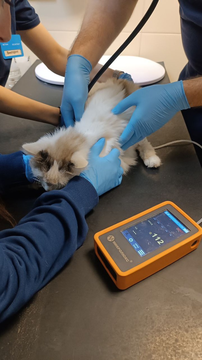 ❗️Еще позавчера она была бодра и кушала, а сегодня слегла пластом. Гематокрит (важнейший показатель красной крови) — всего 10 при норме выше 28 (19 — уже показание к переливанию), эритроциты — 1,41 (норма от 5). Слизистые побелели, кошка как тряпочка, задыхалась. Температура упала до 35,9 (норма у кошек 38--39), давление — до 60/30 (норма 120/80, как у нас).