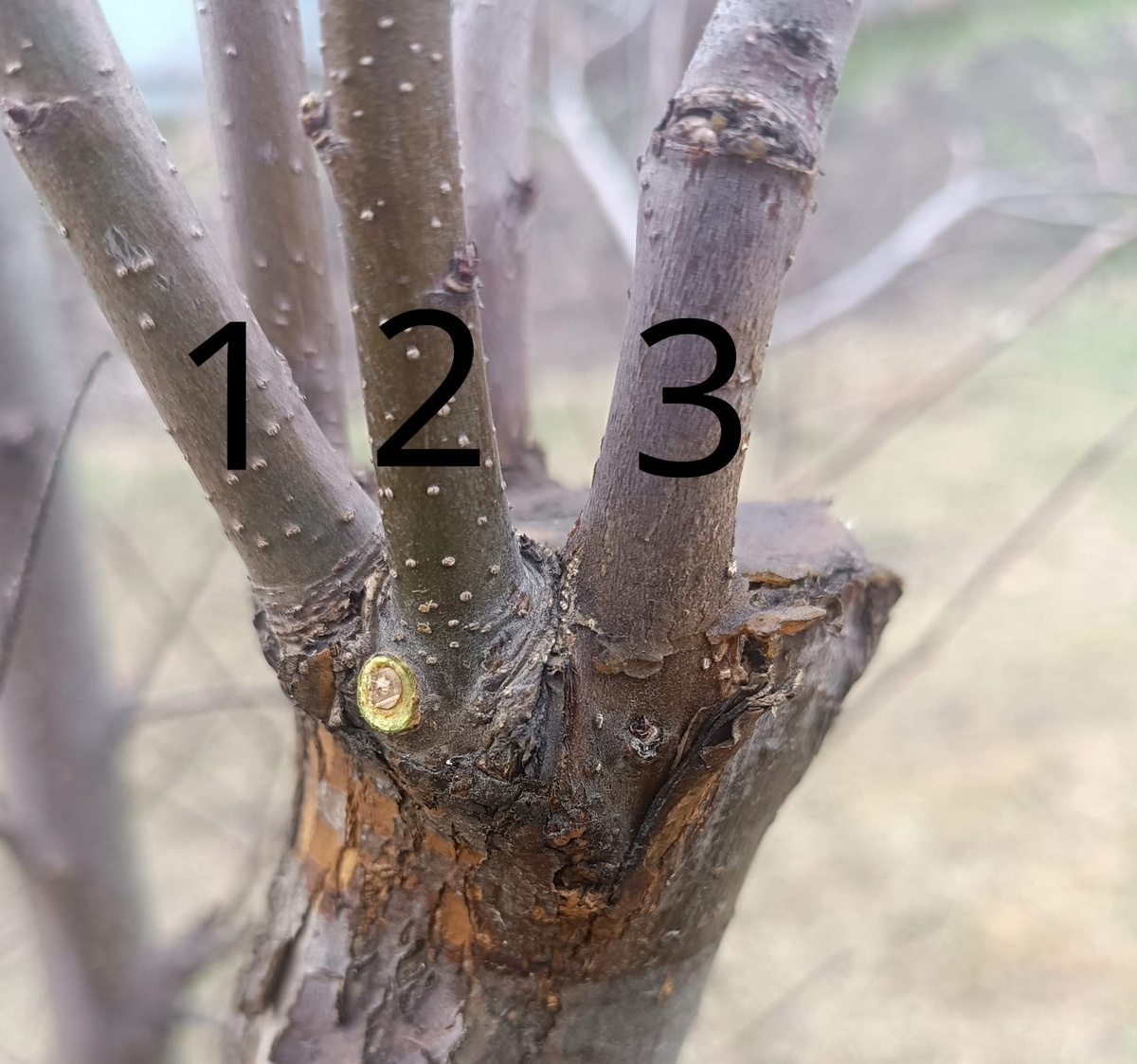 ❤️Листал фото и нашёл для вас интересный образец, пару лет уже лежит😁. Была сделана прививка, но за волчками не уследили. Да, они могут появляться и на краю среза, нужно быть внимательными, и пока всё было обмотано, определить место прививки было непросто 🙂 Так под какой цифрой — прививка?🧐