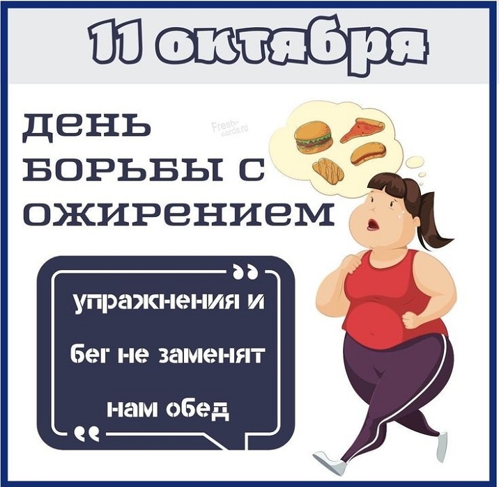 Вот сегодня как раз такой день - День ожирения. В некоторых источниках его называют также Днём борьбы с ожирением. Но это как в математике: от перемены мест слагаемых сумма не меняется. Ожирение - оно и в Африке ожирение, нашего образа жизни зримое отражение. Сначала оно как-то и не особенно мешает, а вот когда, что называется, человек уже дошёл до ручки, тут настоящие проблемы возникают.