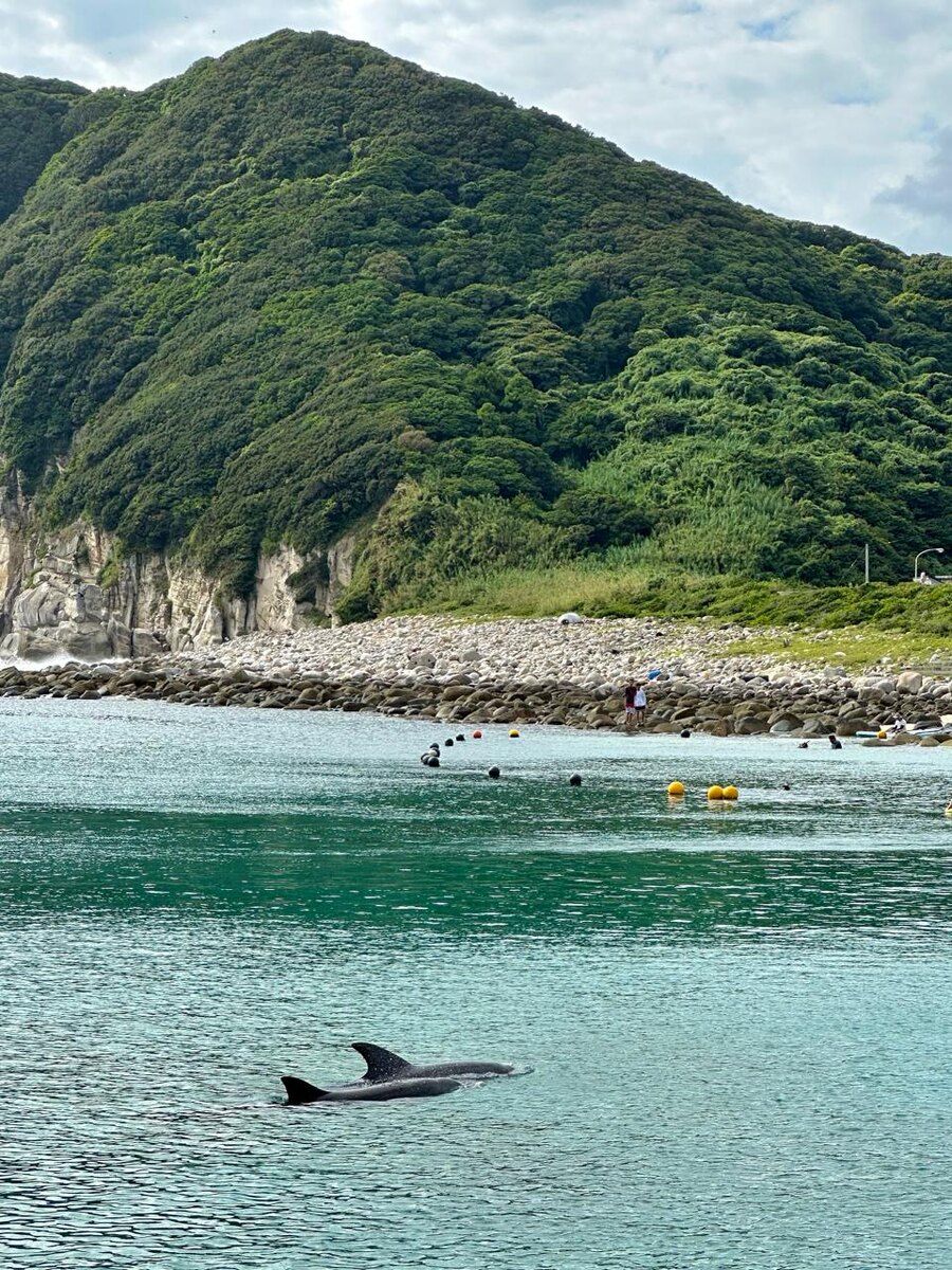 Эту поездку на остров Кащиваджима мы запомним надолго! Нам с Таро довелось встретиться в море с дельфинами. Случилось это неожиданно: мы плавали у камней с масками и любовались тропическими рыбками, а наши молодожены загорали на берегу. Я вынырнула из воды, чтобы позвать их поплавать вместе с нами. Но Даша и Лева испуганно махали руками и что-то кричали. Обернувшись назад, я увидела рядом с собой огромный плавник дельфина. Это было очень неожиданно! Я испугалась и, нырнув в воду, как могла быстро, поплыла к берегу. И тут дельфин оказался прямо передо мной! Он повернул голову и заглянул мне в лицо! Умное животное, похоже, не собиралось меня пугать. Заметив через маску мои округлившиеся от испуга глаза, дельфин решил отплыть подальше и направился к Таро. Мой японец был рад этой встрече! Говорит, что всю жизнь мечтал вот так поплавать с дельфином. Уважаемые читатели! Пожалуйста, подписывайтесь на мой Телеграм канал! Там будет больше публикаций и видео! Кто хочет материально поддержать мой