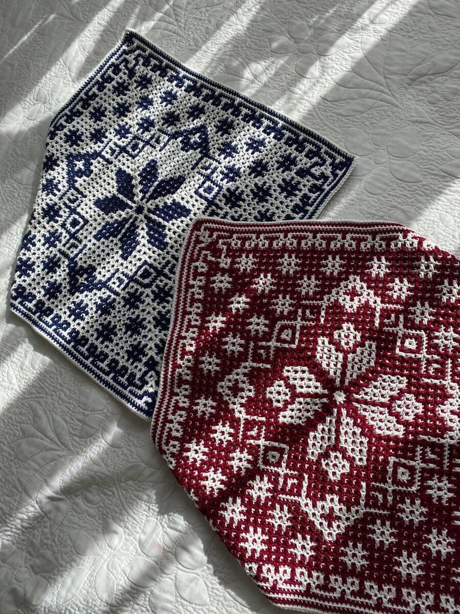 Новогодние полотенца. Новости наших чатов Светлана связала парочку красавиц, показываю вам🔥 Светлана: «Новогодние салфетки в лучах осеннего солнца. Пряжа yarnart ideal хлопок, цвета 241,238,222, крючок 3,5. Размер получился 42х42 ( без ВТО). Спасибо, Юля, за азарт».