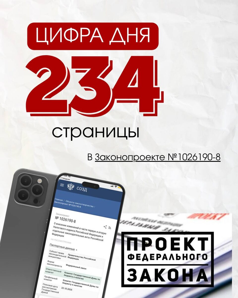 В Законопроекте №1026190-8 всего 234 страницы. Ждем вас сегодня в 11:00 на клубном просмотре эфира «Налоговая реформа: Как бухгалтеру подготовить себя и клиента к изменениям 2026 г.» Регистрируйтесь ➡️ https://buhkv.ru/reforma2026 мы вам напомним о начале. Приходите вас ждет много пользы и подарков 🎁