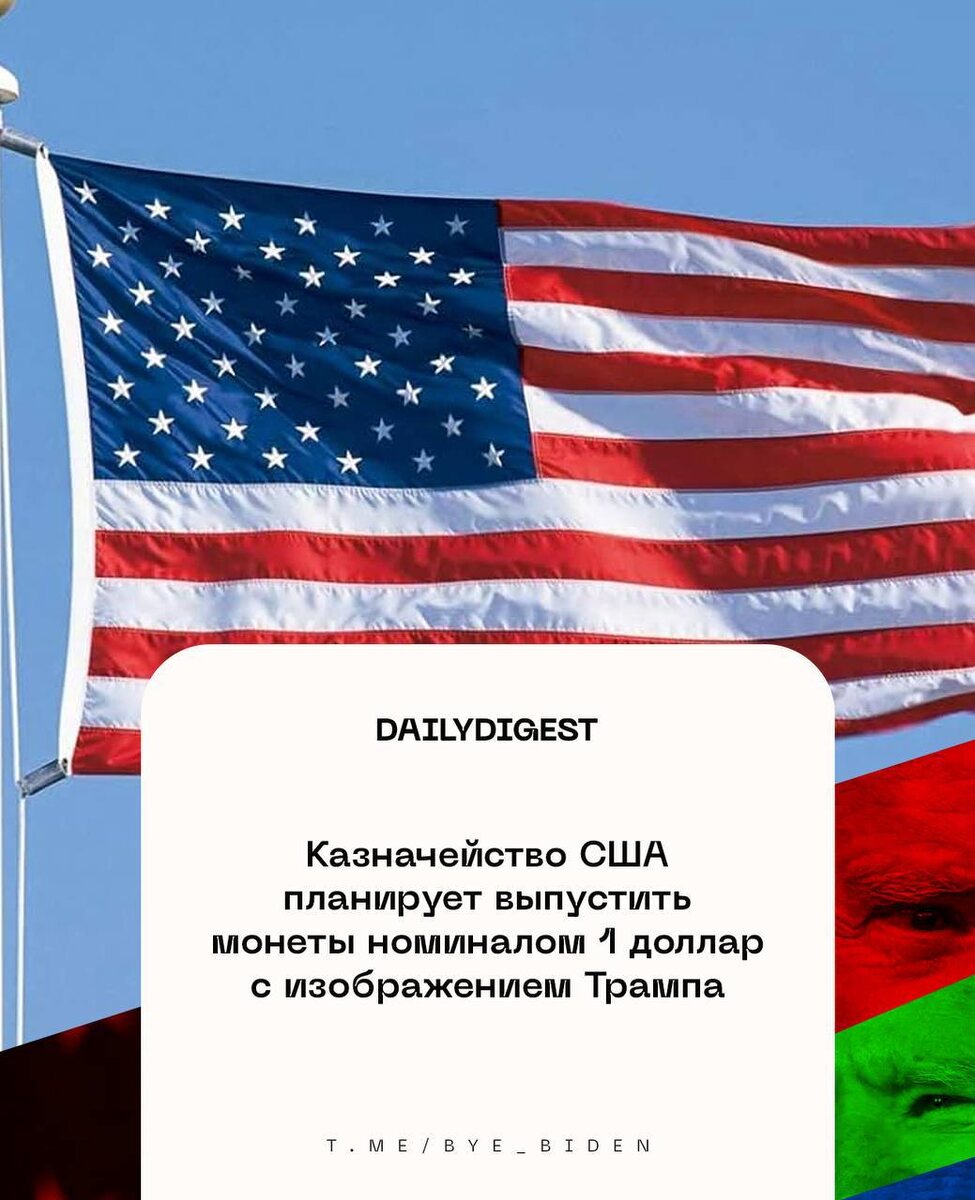 🔹Казначейство США планирует выпустить монеты номиналом $1 с изображением Трампа.