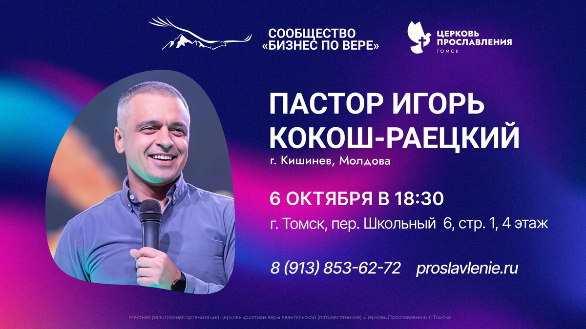 На этом служении будет проповедовать пастор Игорь Кокош-Раецкий (г.Кишинев, Молдова).