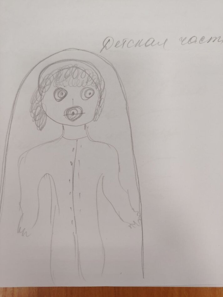 Когда я предложила ее представить и изобразить, сопротивление не заставило себя ждать и Настя сказала, что рисовать не умеет. Но как только я усомнилась:"Совсем?" и дала понять, что на лавры именитых художников мы не претендуем, появился рисунок.