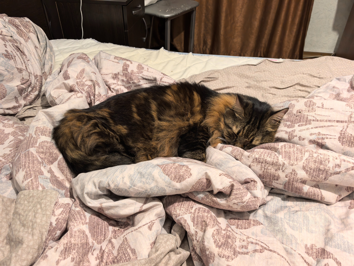 Всем привет! С вами Кузя Кусалочкин (он же Кузьма I). Сегодня расскажу про мою новую игрушку и про КОТострофу в подъезде. Утро началось стандартно. Сначала я в 6 утра пытался будить хозяйку, но ничего не вышло. Потом мы с ней встали по её будильнику и пошли на кухню. Как всегда, мне выдали паштет на царской тарелке. На новые каналы я сейчас не подписываюсь. Дружить, забежать в гости времени нет. Проводил хозяина и решил поспать. Свил себе гнездо: Соседи опять жужжали. Не знаю, сколько дней они ещё будут окна ставить. Хозяйка первую половину дня занималась своими делами, а потом пошла на море. Сказала, что даже на пляже полежала, так тепло было. А ещё в воде долго сидела. На обратном пути хозяйка видела Бублика: Значит, по нашему двору ходит, а вот кушает где-то в другом месте. Ну и ладно. Вася тоже бродил где-то, а потом сюда вернулся. Я был очень удивлён, когда маркетплейс вовремя прислал мою игрушку. Хозяйка сходила забрала. Правда, когда она вернулась, я ещё спал: Но игрушка меня