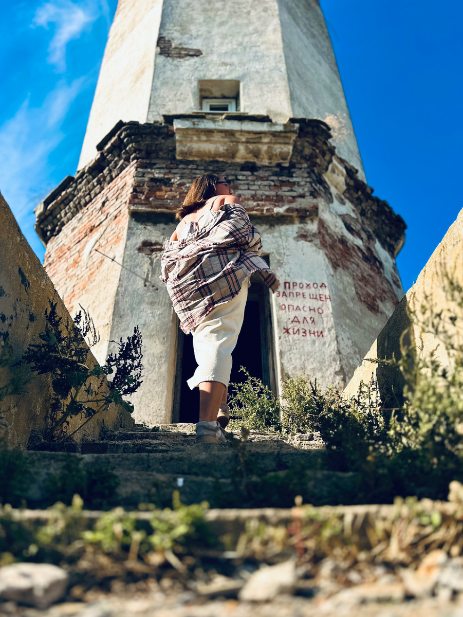 Ну и маяк вот тоже есть. Добраться к нему хоть и по бездорожью, но можно даже на низком седане, поэтому мы такой шанс упускать не стали. Приехали, а вокруг нет ни души. Море, старые кинематографичные постройки и мы на пару – все.