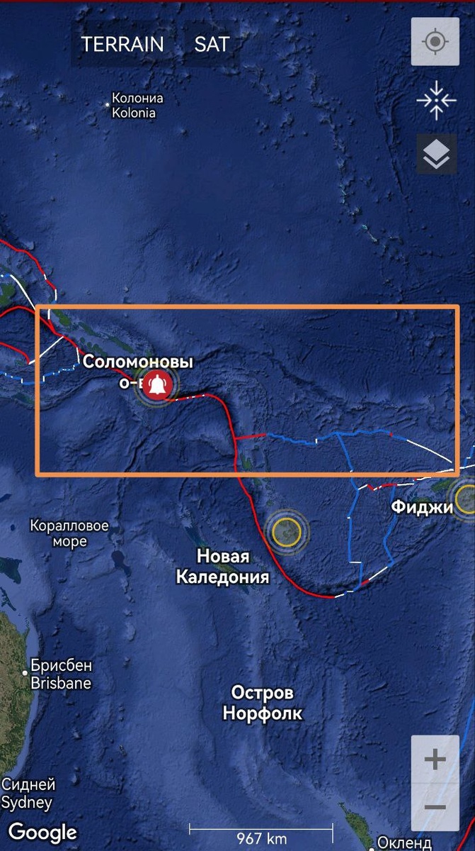 Океания от Соломоновых островов до Фиджи остаётся в сильном тектоническом напряжении. С ночи там формируются протяженные ОСТИ.