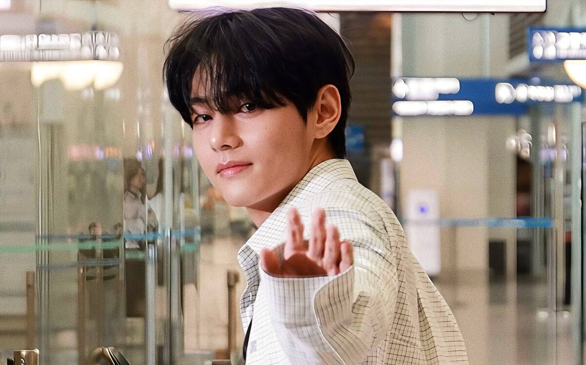 В аэропорту он появился бодрым, сияющим и весьма довольным жизнью. Лук был довольно сдержанным, напомнил мне студентов из американских романтических комедий. Но классные детали, типа галстука и милейшего чубрика на сумке, цепляли глаз. Одна чудесная девочка уже ранее показывала мне такого медведика и мы смеялись, что он напоминает Тэ, кто бы мог подумать, что совсем скоро мы увидим этого мальчика-медвежонка уже по назначению.