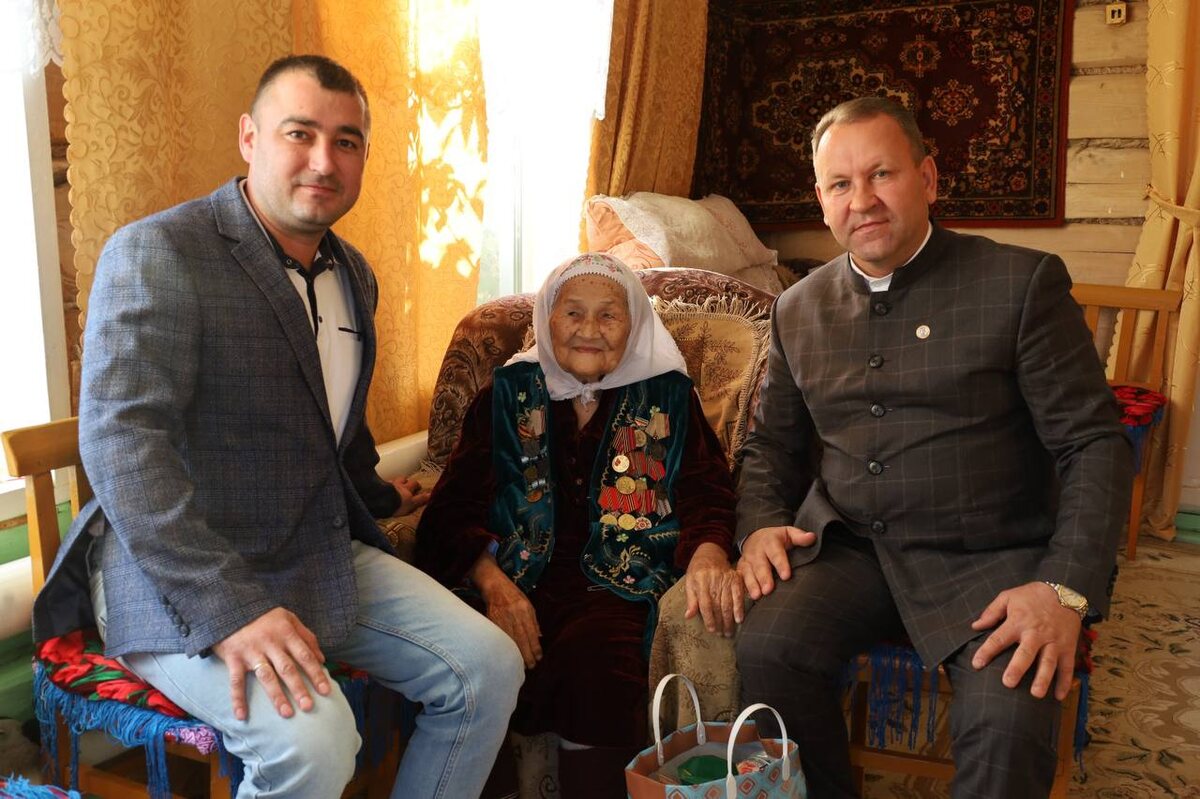 💗Тыл ветераны Минҗофар Сабирова 1924 елның 1 июлендә Өтнәдә туып, Күлбашта үскән. Ветеранга 101 яшь. Район башлыгы Алмаз Хисаметдинов Минҗофар апаны өенә барып Өлкәннәр көне белән котлады. Минҗофар апа 13 ел колхозда, 32 ел кибеттә эшләп, лаеклы ялга чыга. 40 ел Иске Иябашта абыстай вазыйфасын башкара. Тормыш иптәше Рамазан белән җиде бала тәрбияләп үстерәләр. Хәзерге вакытта авылда улы Данис белән яши. Ветеранга исәнлек-саулык телибез! 📷 З. Рамазанова @arskmedia.ru