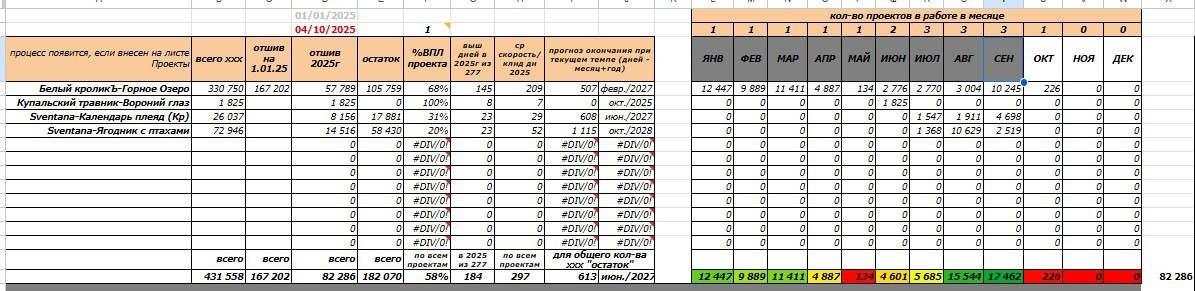 Вышивка. Сентябрь. Итоги Села Маша вчера писать итоговый сентябрьский пост с цифрами и фотками. И тут вдруг выяснилось, что моя выстраданная табличка аннулировала почти все формулы 🤦🏻♀️ Это не Exel это Libre Office меня подвёл. Неудачно обновился, наверное. Пришлось вернуться в Google Docs. Формулы частично восстановила. По крайней мере, всё основное снова считает 😅 Итоги сентября: - Горное озеро от ТМА Белый кролик - отшито 10 245 крестиков. Закончен очередной ряд! 68% По плану 10 тысяч в месяц надо бы. В сентябре получилось. - Календарь плеяд от Sventana - отшито 4 698 крестиков. 31%. Четкого плана нет. - Ягодник с птахами (панно) от Sventana - отшито 2 519 крестиков. 20%. Четкого плана тоже нет. Просто вышиваю в удовольствие. Все проекты будут продолжаться в октябре. Сообщество ВК