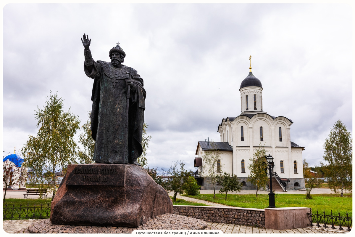 В селе Дворцы, на берегу Угры, стоит Владимирский скит — хранитель памяти о Великом стоянии 1480 года, после которого Русь освободилась от монголо-татарского ига. Монахи никогда не брали в руки оружие. Но в те драматические дни они были рядом: лечили раненых, поддерживали жителей и воинов, молились за исход битвы. В этом есть особый символизм: скит хранит не только историю военной победы, но и память о духовной поддержке, без которой она была бы невозможна. Главная достопримечательность Владимирского скита — масштабная диорама «Стояние на Угре». Это не просто музейная картина, а целая панорама с эффектом присутствия. Художник Павел Рыженко сумел передать напряжение XV века: свет, звук, шум копыт, звон оружия, голоса людей — всё это создаёт впечатление, будто ты стоишь среди воинов, на линии противостояния. На территории установлен и первый в России памятник Ивану III, выполненный петербургскими скульпторами. Сегодня Владимирский скит — это и музей, и монастырская тишина, и место силы.