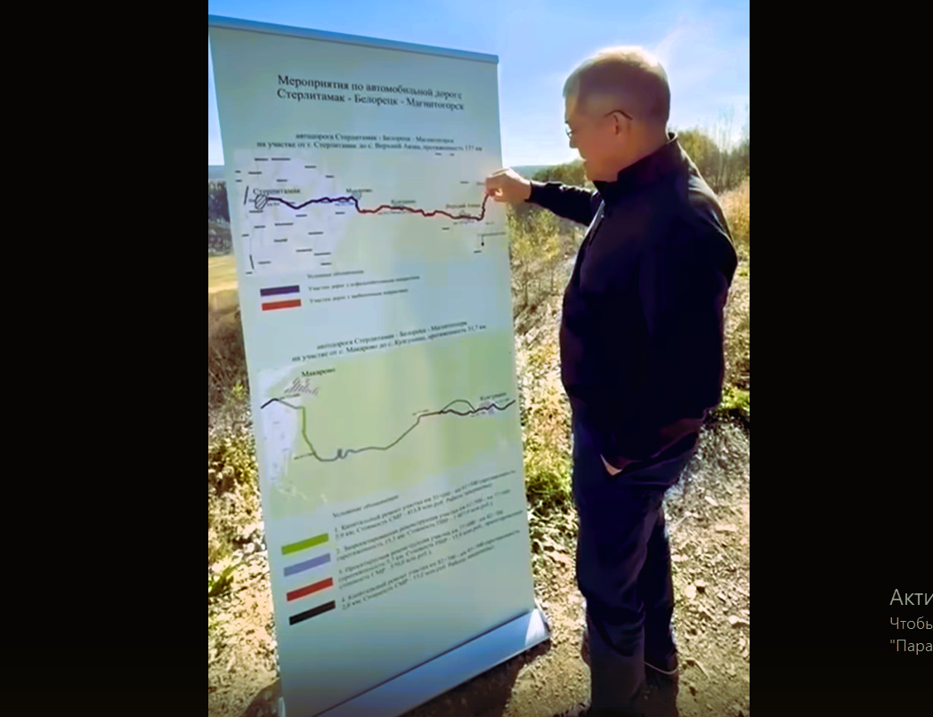Глава Башкирии показал на карте, планируемый маршрут новой дороги