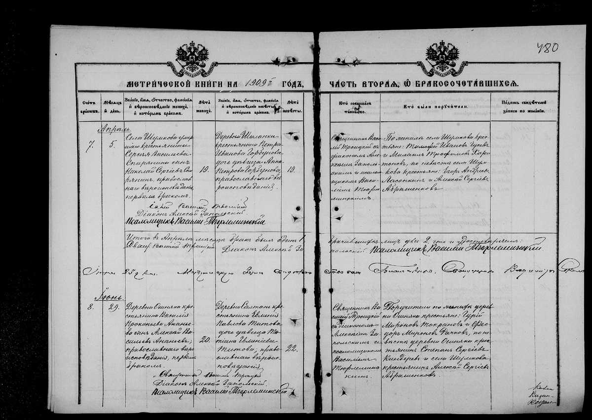 Как видите, почерпнуть можно многое. Бонусом, поможет вам сузить периоды поиска метрик о рождении. И, конечно, вы узнаете где продолжать поиски предков по линии невесты.