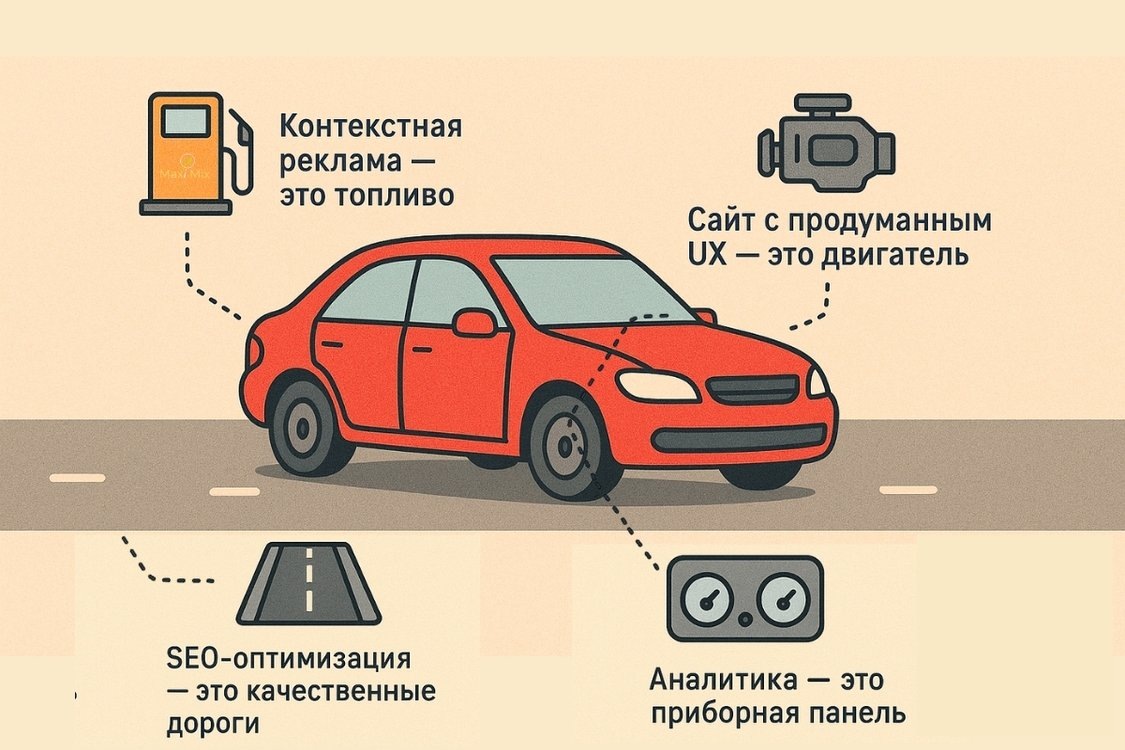 Вы когда-нибудь сталкивались с такой ситуацией? Запустили контекстную рекламу – появились заявки, но стоят они, как крыло самолета. Сделали красивый редизайн сайта – трафик есть, а продаж нет. Наняли копирайтера написать тексты – вроде бы всё хорошо, но общего результата не видно. Это - классические признаки точечного подхода. Сегодня мы разберемся, почему разрозненные действия решают одну проблему, но создают другую, и докажем, что только выстроенная система интернет-маркетинга приносит стабильный и измеримый результат. Представьте, что ваш бизнес – это автомобиль. Чтобы он ехал, нужны все четыре колеса, исправный двигатель, рулевое управление и топливо. Что произойдет, если вы зальете супер-бензин (запустите дорогую рекламу) в машину со спущенным колесом (не работающей формой заявки на сайте)? Вы потратите много денег, но далеко не уедете. Именно это и происходит с точечным маркетингом. 3 главные проблемы точечного подхода 1. Эффект дырявого ведра Вы привлекаете поток клиентов через