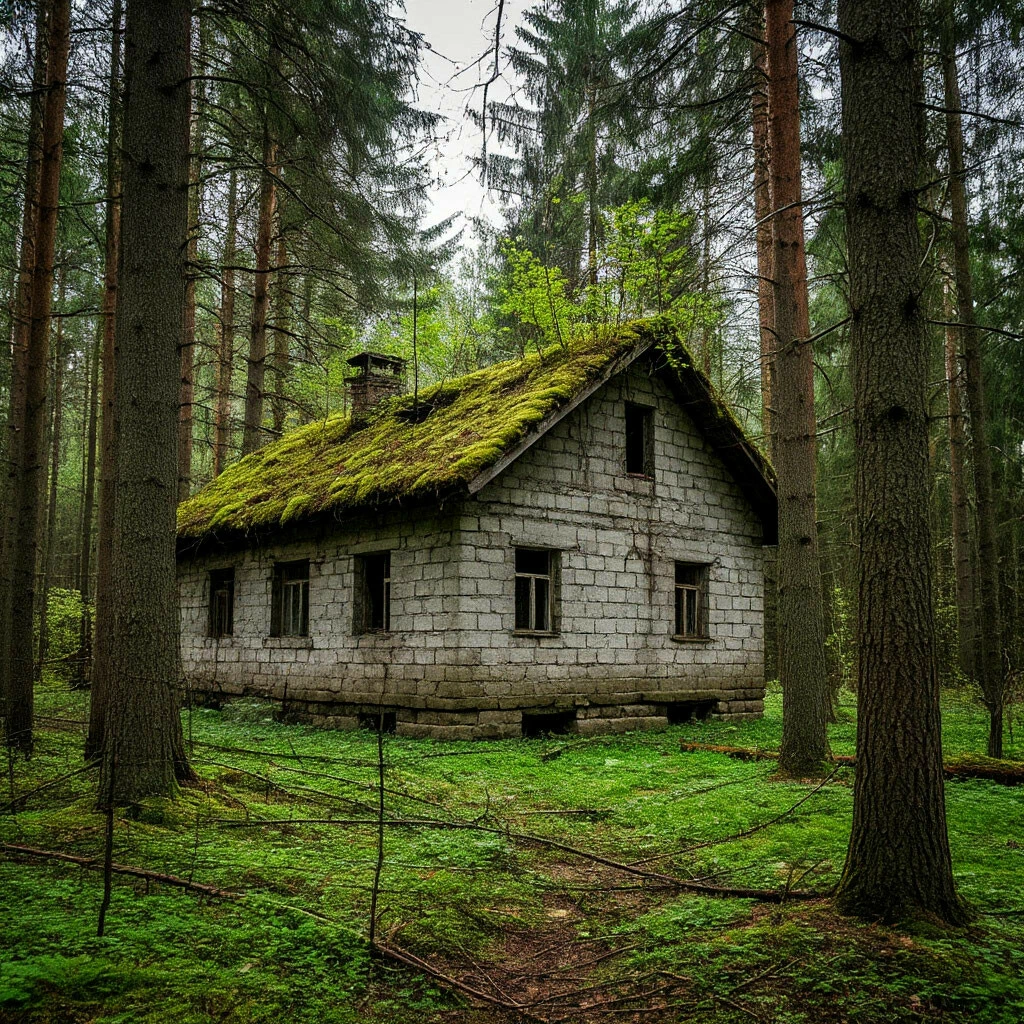 Наконец лес начал редеть. И между деревьев появился дом, одноэтажный, из блоков, грубый и серый, обнесенный сеткой с колючей проволокой. Крыша заросла мхом и даже несколькими деревцами. Такой с воздуха трудно было бы заметить.