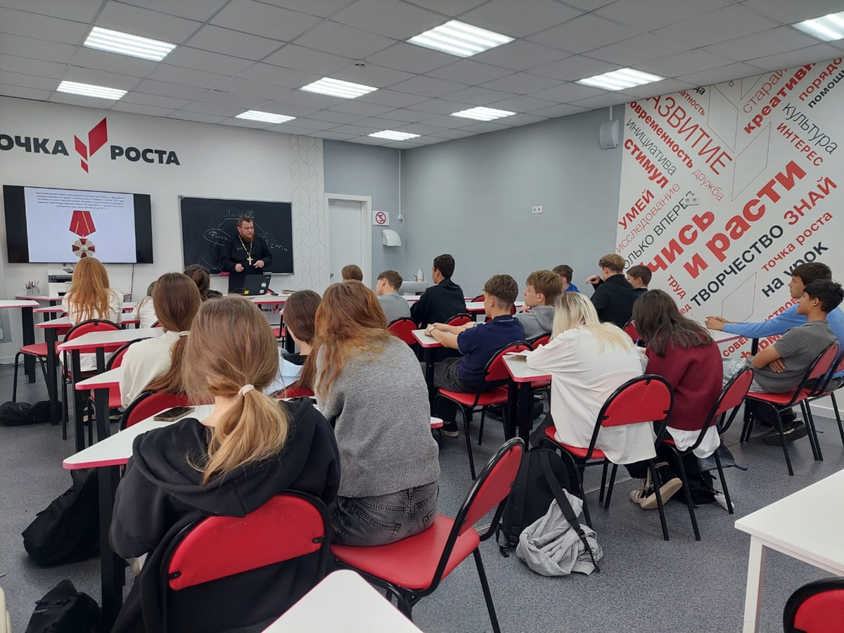 29 сентября 2025 года помощник Осинниковского благочинного по миссионерской работе, настоятель храма иконы Божией Матери «Всех скорбящих Радость» пос. Тайжина, кандидат богословия иерей Роман Алексеевский в рамках урока «Разговоры о важном» провел беседы для учащихся 9 классов школы № 31 г. Осинники на тему: «О Славных сынах Отечества». Священник рассказал школьникам о воинах-христианах начиная с древних времен, о русских святых воинах и о выдающихся полководцах XVIII-XIX веков. Встречи прошли в теплой и дружественной атмосфере, школьники смогли задать интересующие вопросы и поделиться своими мыслями. Такие мероприятия помогают детям расти духовно и нравственно, воспитывая в них любовь к Родине и уважение к традициям.