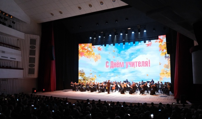 Центральный концертный зал стал местом чествования учителей. В холле гостей встречали девушки в традиционных русских нарядах с корзинками, наполненными поздравлениями – разноцветными свитками, на которых ученики из разных школ написали слова благодарности своим наставникам.