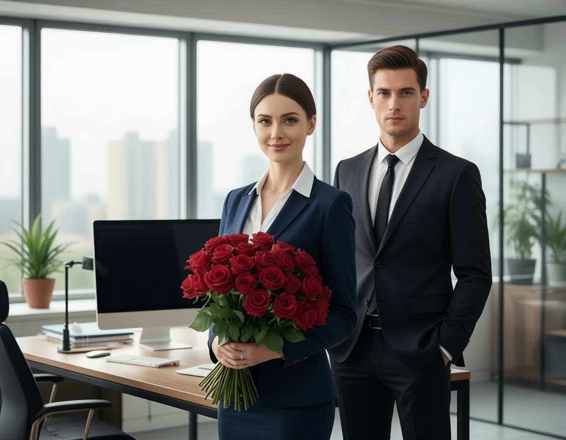 Закрывается дверь. Следом открывается моя. На пороге Снежана – глаза сияют, щеки вспыхнули. В руках – огромный букет алых роз. Полсотни, не меньше, так что её худенькие пальцы едва обхватывают стебли.