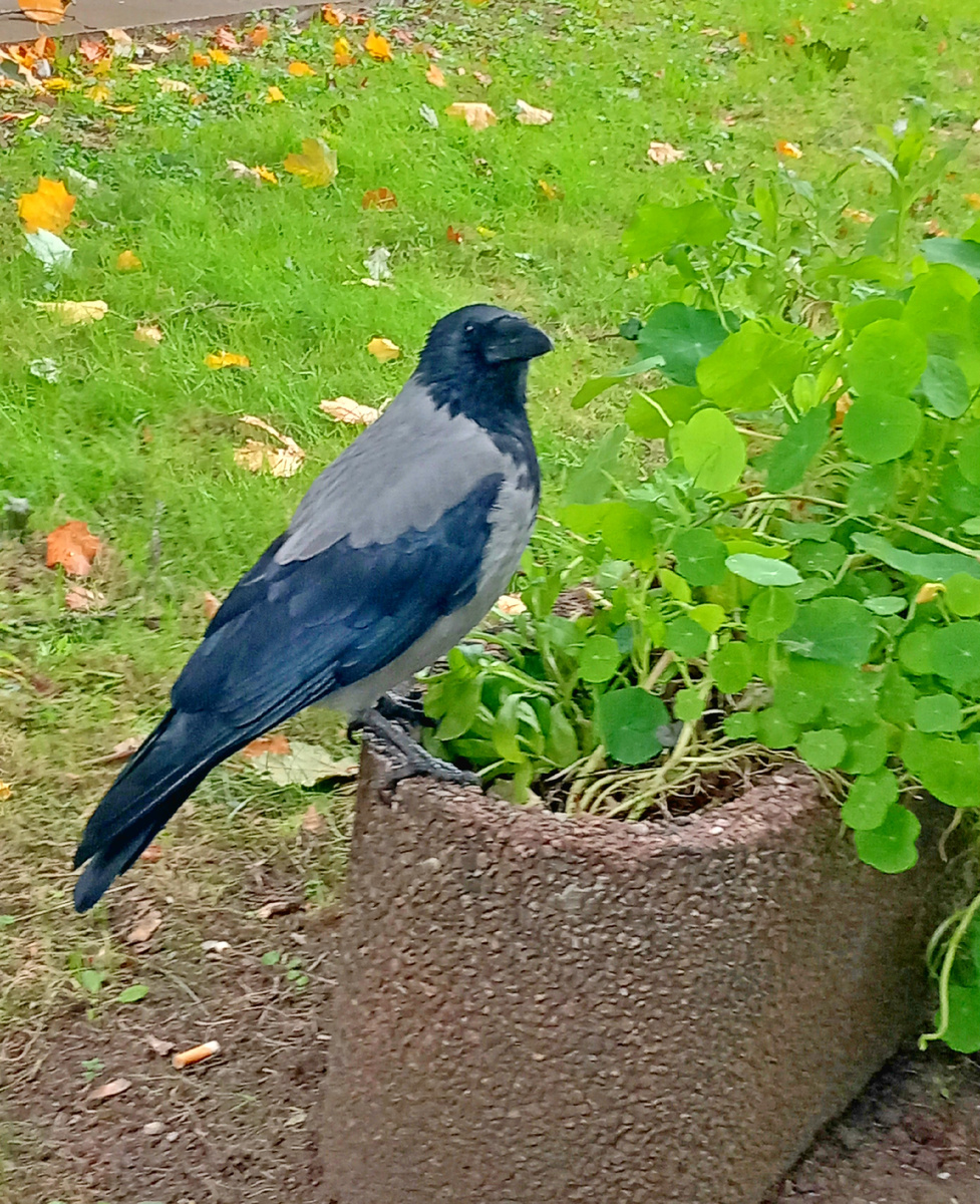У каждого человека есть свой круг общения. У кого-то - коллеги, у кого-то - коты. У меня сегодня - вороны. Они появляются там, где ты по-настоящему одна, и вызывают ощущение, что ты не одинока, а стала участницей маленького, и слегка театрального заговора. В тот день на скамейке, где я присела и пила кофе с пиццей, появилась она. Одна. Чёрно-серебренная, блестящая взглядом и клювом, с видом не молодой графини на деловом ланче. Подошла без суеты, посмотрела пристально - будто измеряла мою душу сантиметром. Первый кусочек пиццы она приняла с вежливостью, с какой принимают приглашение на бал. Придержала лапой - словно вилкой - и рассматривала, раскусывала очень размеренно, почти религиозно. Потом посмотрела на меня. Взгляд был ясный и спокойный: Ну, продолжаем? Я подкинула ей пиццу. Но второй кусочек она не стала есть. Она его спрятала. Аккуратно засунула в листья, закопала, сделала тайник. Затем третий. И еще. Я насчитала не меньше пяти «зарезервированных» кусочков. Это была не жадность