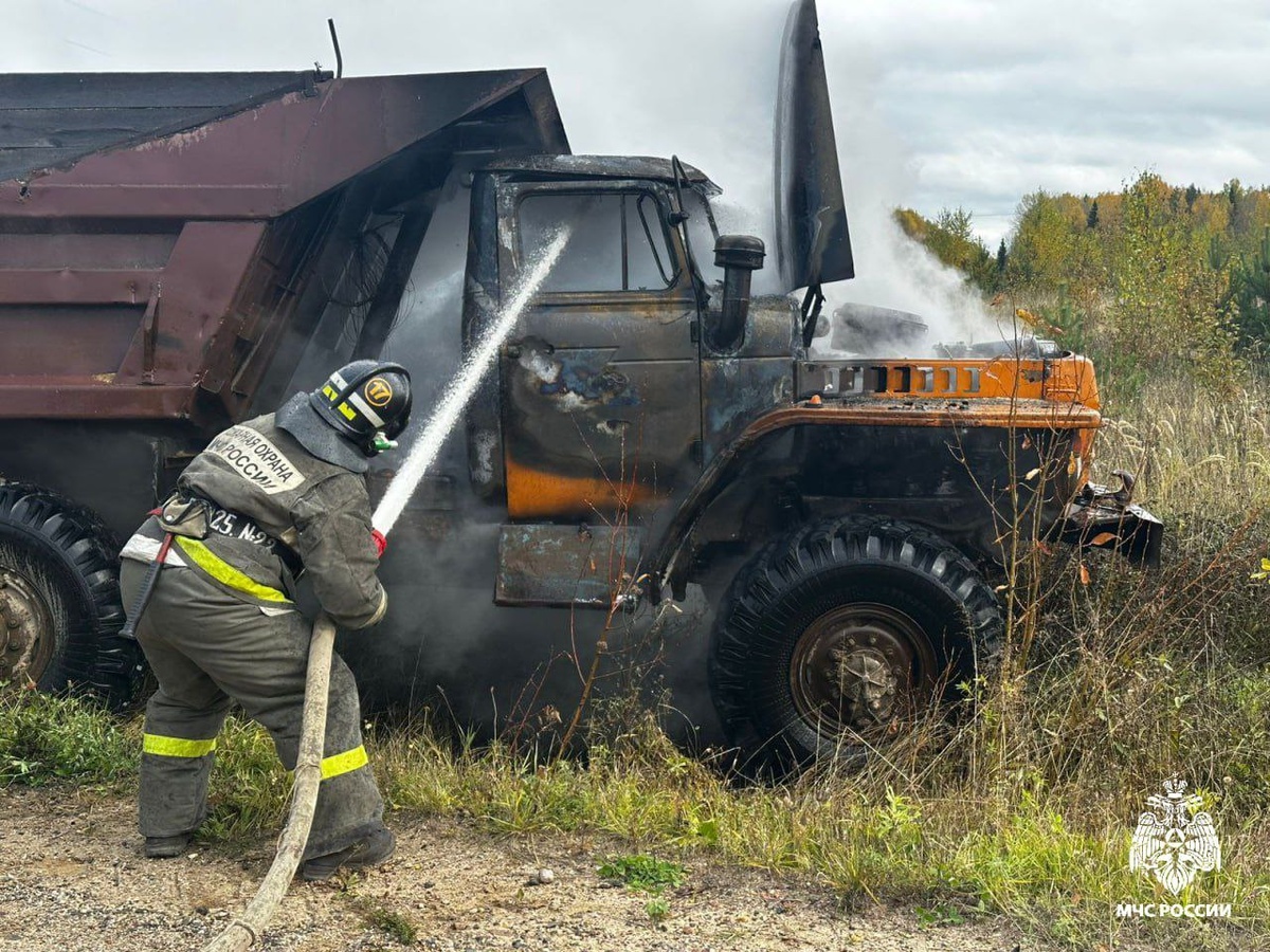 ⭕В 10:18 3 октября в МЧС России поступило сообщение о возгорании автомобиля вблизи п. Анфимово Чухломского района. В 10:39 огнеборцы МЧС России полностью ликвидировали пожар. В результате происшествия огнём уничтожены силовые кабели на аккумуляторе, выгорело внутри подкапотного пространства и внутри кабины автомобиля Урал. Предполагаемая причина - аварийный режим работы электропроводки. Обстоятельства устанавливаются.