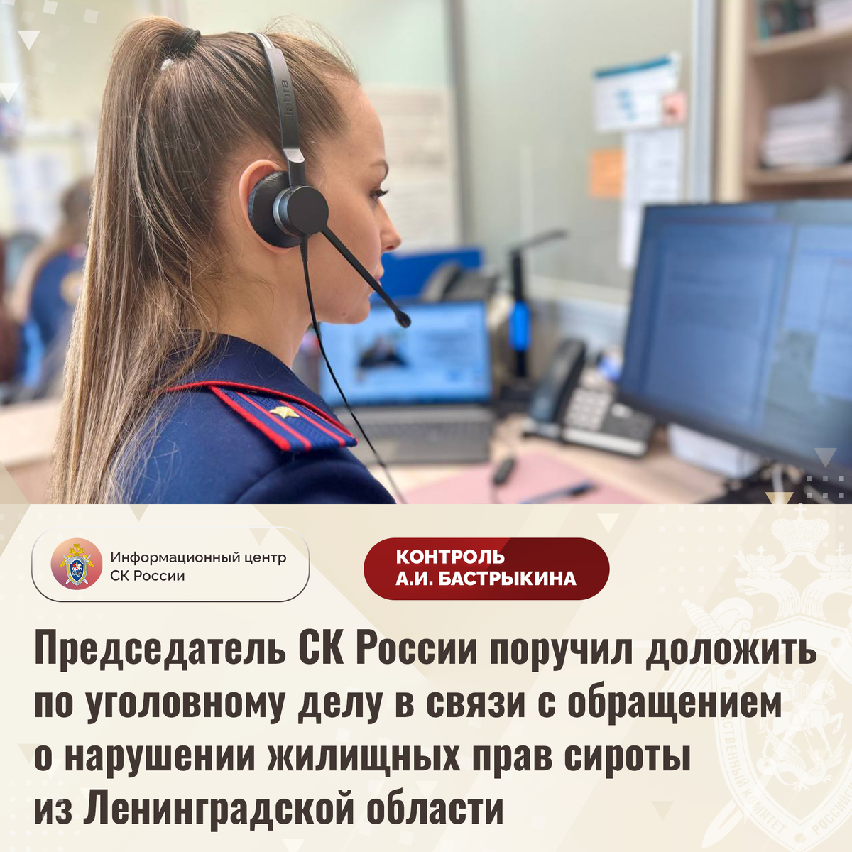 Председатель СК России поручил доложить по уголовному делу в связи с обращением о нарушении жилищных прав сироты из Ленинградской области