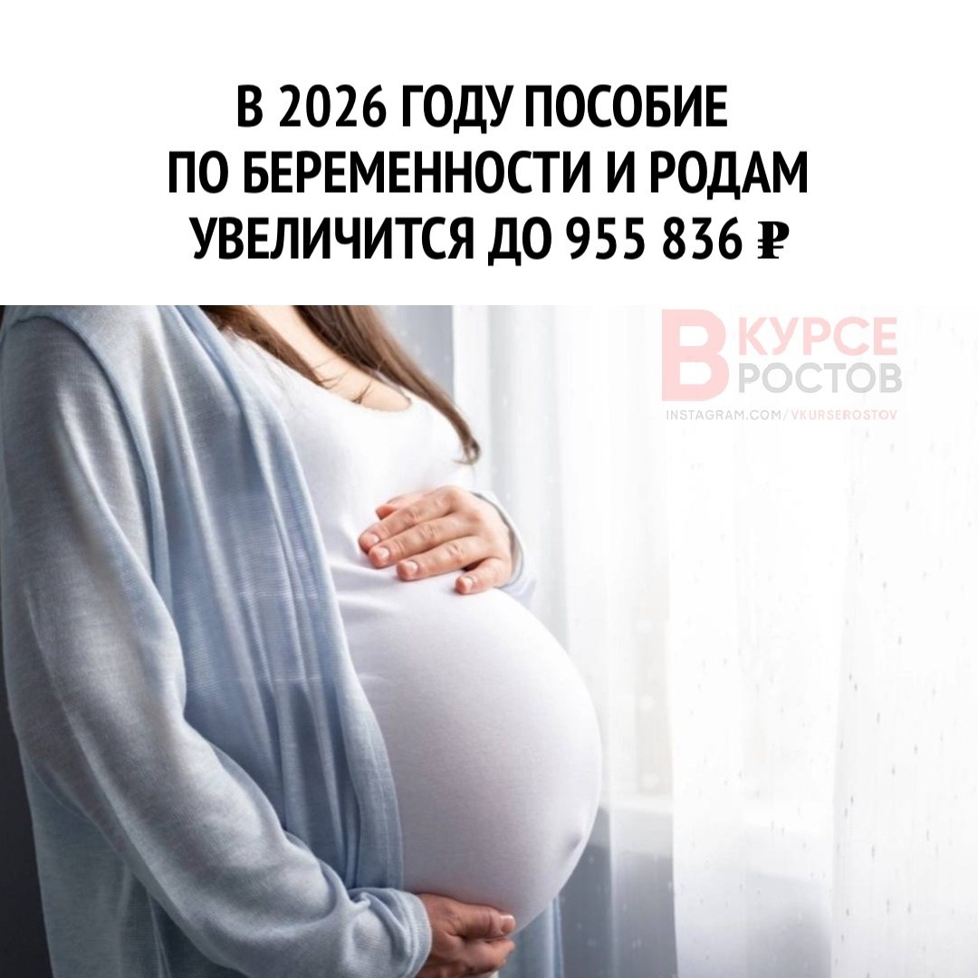 👶🏼В 2026 году пособие по беременности и родам увеличится до 955 836 ₽
