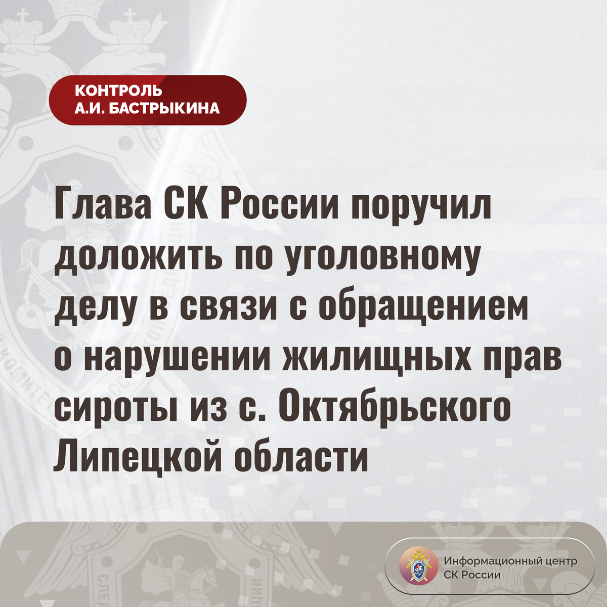 Глава СК России поручил доложить по уголовному делу в связи с обращением о нарушении жилищных прав сироты из с. Октябрьского Липецкой област